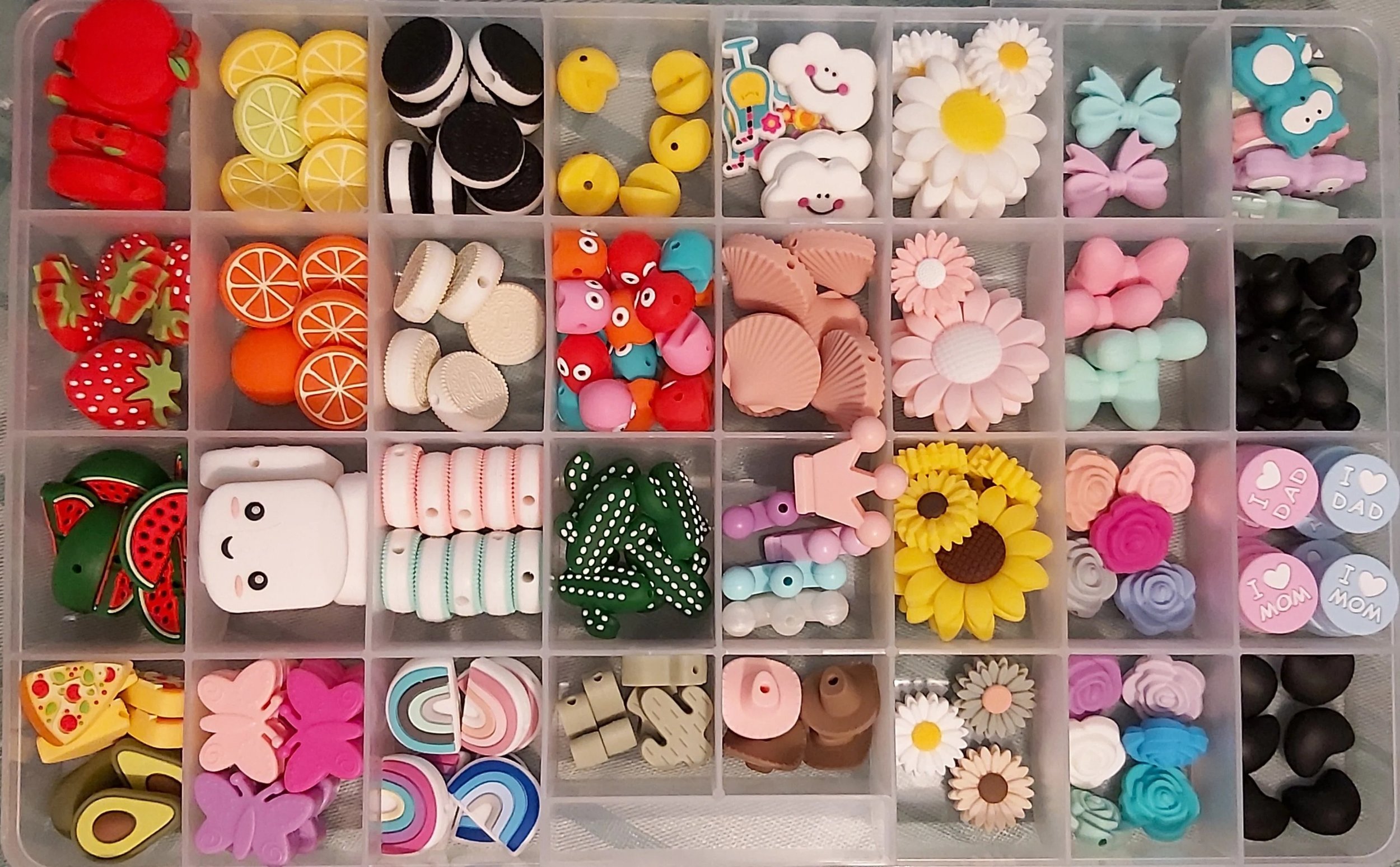 **Small objects and beads can present choking hazards to young children. Cords, clasps and pacifier clips are not intended to be chewed on and may present choking hazards. NEVER leave a child unattended with beads or other products. Always dispose of any damaged product. No product is completely indestructible, and fully formed teeth could potentially damage product if chewed aggressively, so responsible attentiveness is needed for any user or purchaser. Wash products with soap and water prior to first use.